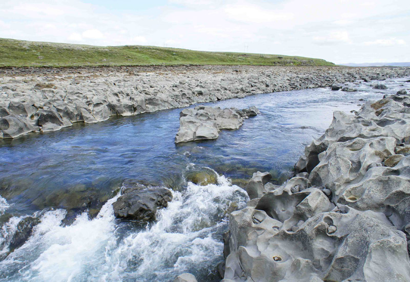 Floden Tungnaá har kristallklart vatten som strömmar med stor kraft genom smala bergsklyftor. Här kan du uppleva de mycket vackra omgivningarna och stor, stark forell i det kristallklara vattnet.