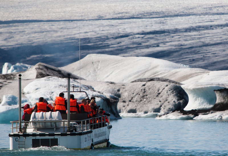Vid ankomst till glaciärlagunen går du ombord på en fantastisk 45–60 minuters Zodiac-båttur mellan de mäktiga isbergen. Du kommer riktigt nära de vit- och blåskimrande isjättarna. Din glaciärguide tar dig med på en resa tillbaka i tiden. Lär dig mer om lagunens historia, dess formation och de människor som en gång levt i detta hänförande landskap.