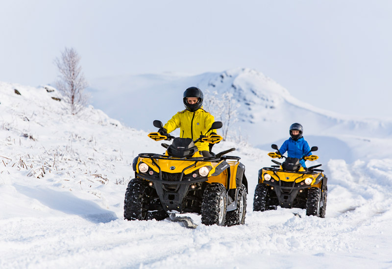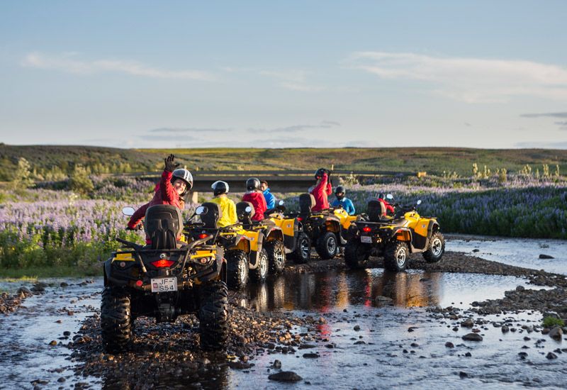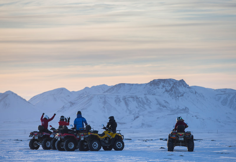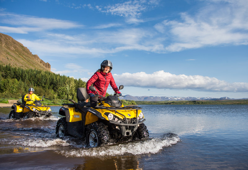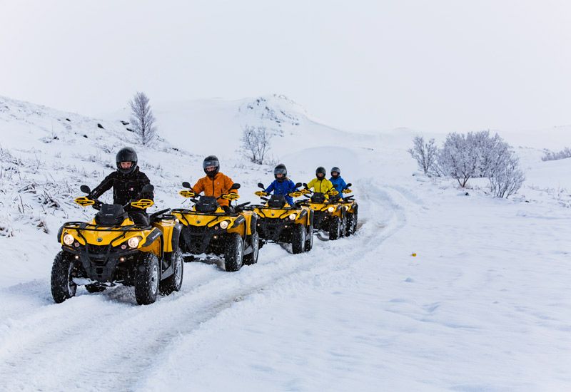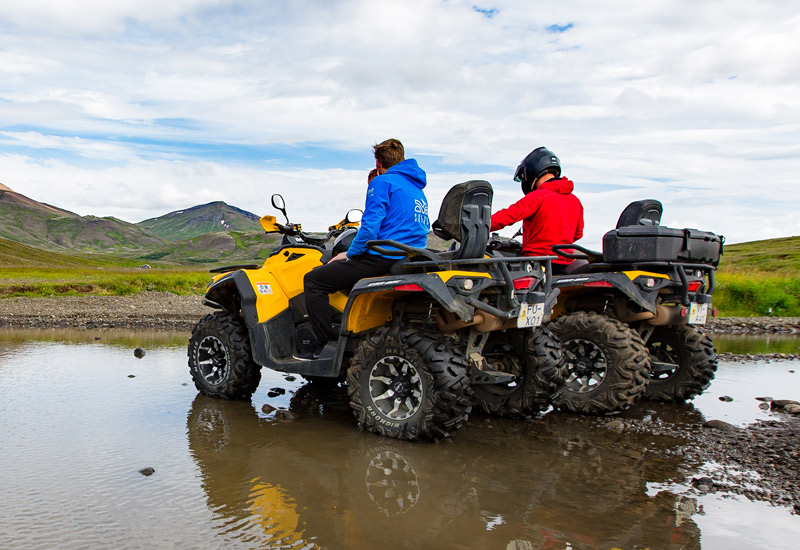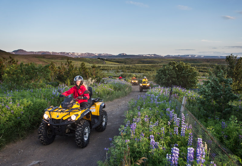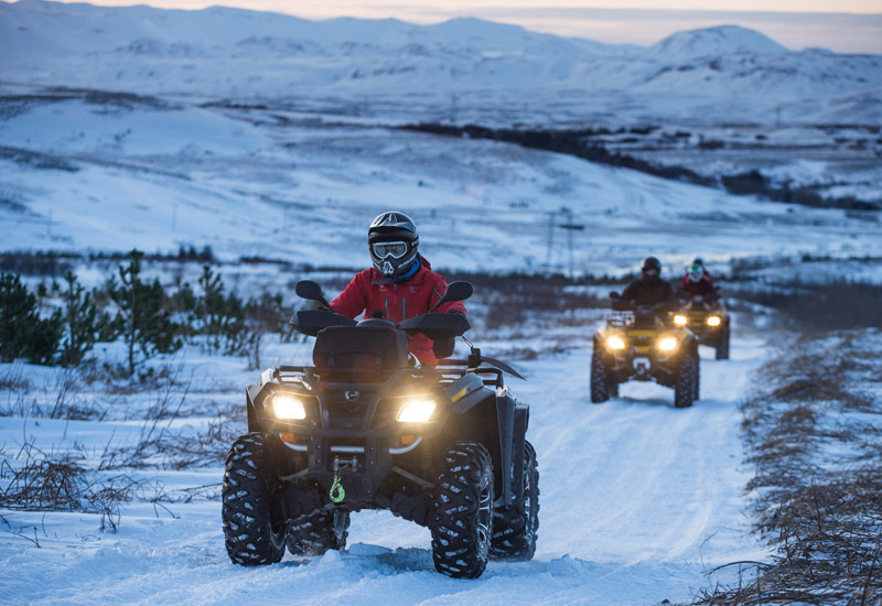 Efter en kort 15 minuters bilresa från Reykjavik hittar vi våra 650 cc CanAm Outlander Max fyrhjulingar väntandes utanför vår bas i stadens utkant. Här får ni en kort säkerhetsgenomgång och instruktioner om hur fordonen fungerar, innan vi ger oss ut på en timmes ATV-tur till toppen av Hafrafjallberget. När vi väl är uppe njuter vi av den fantastiska utsikten över Reykjaviks storstadsområde och berget Esja, innan vi kör tillbaka till basen. Att köra dessa kraftfulla maskiner är ett utmärkt sätt att upptäcka kullarna och bergen i utkanten av staden.