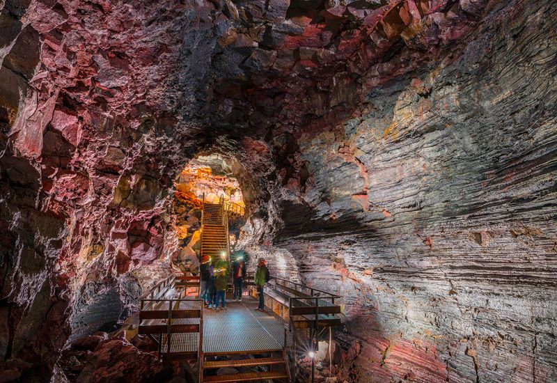 Efter ATV-turen återvänder vi till stadens centrum där ni kan njuta av en lätt lunch och förbereda er för dagens andra äventyr. Efter lunchpausen tar vi en kort bilresa till området Bláfjöll (De blå bergen), där vårt grottvandringsäventyr börjar. Detta är en tur alla kommer att älska när vi utforskar denna fantastiska lavagrotta och upptäcker de underverk som denna vulkan skapade för mer än 2000 år sedan. Grottan är ett perfekt exempel på en isländsk vulkantunnel och ligger i ett av världens mest vulkaniskt aktiva områden. Vi kommer att klättra, krypa och gå på vår vandring under jordytan, och lära oss mycket om Islands geologi av våra utbildade grottguider.