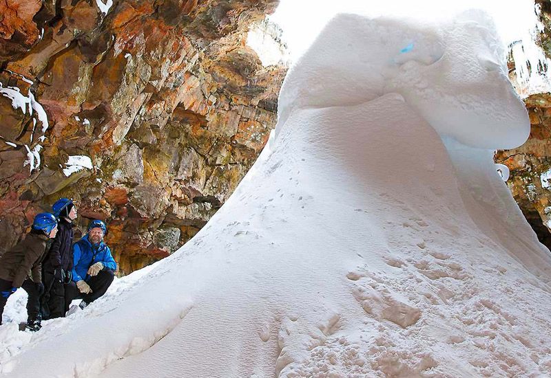 En resa in i Raufarhólshellir är en unik upplevelse och en fantastisk möjlighet att bevittna de inre processerna vid ett vulkanutbrott. I denna tunnel vandrar man i fotspåren av lavan från Leitahrauns tidigare utbrott, öster om Bláfjöll-bergen för cirka 5200 år sedan. Spektakulära isskulpturer formas vid grottans ingång varje år, vilket gör besöket i lavatunneln ännu mer hänförande.
