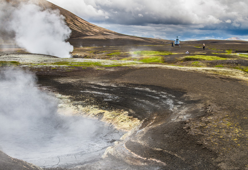Under denna helikoptertur på Island ser vi till att landa utanför de vanligaste områdena och på platser där det inte är massa folk, så att vi kan uppleva områdets råa energi på egen hand. När vi landar i det geotermiska området Hengill – uppkallat efter vulkanen Hengill – kommer du kunna bevittna den äkta och orörda isländska naturen. Vi tar dig nära varma källor och kokande lerhål, och om det är sommar kan du till och med ha turen att se några får ströva omkring i dalen. Tänk på att detta inte är en vanlig turistattraktion – det finns inga säkerhetsrep eller liknande – platsen ser ut precis som naturen skapade den. Oavsett säsong och tid på året erbjuder området en magisk, färgsprakande och vacker utsikt.