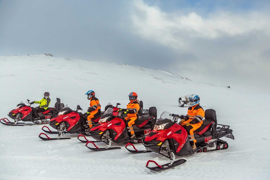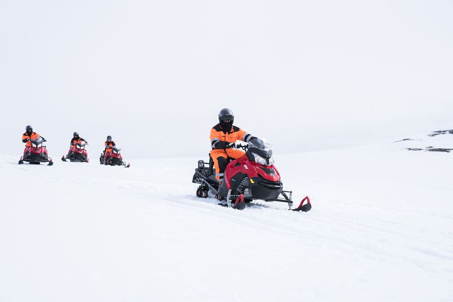Kör fram genom snön med fantastisk utsikt på toppen av en glaciär. En snöskotertur är en populär aktivitet på Island, både bland lokalbefolkningen och besökare.