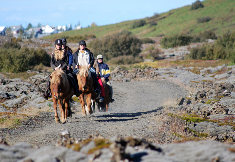 Upplev hur det är att rida på den isländska hästen i fantastiska naturomgivningar strax utanför centrala Reykjavík. Våra vänliga hästar och särskilt utbildade guider leder dig längs otroliga ridstigar där du får uppleva den unika isländska hästen samtidigt som du njuter av den vackra naturen med lavamarker och gröna sluttningar.