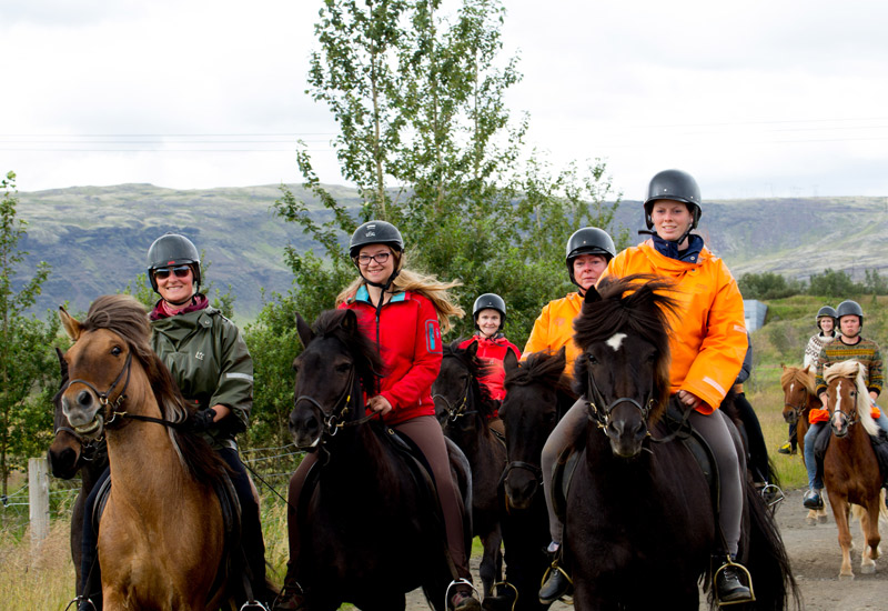 En dag med roliga utflykter på Island – samlade i ett paket. Turen börjar på gården Vellir i Ölfus, där den första delen av dagen ägnas åt ridning på Islands vackra hästar samtidigt som du upplever Islands unika natur. Denna tur ger dig en försmak på det isländska landskapet och känslan av att rida på de unika islandshästarna. Vi tillhandahåller all nödvändig utrustning och en vänlig häst som passar din ridnivå. Det finns inget bättre sätt att komma nära naturen på Island än genom en fridfull och minnesvärd ridtur. På Hotel Eldhestar kan du njuta av en lätt lunchbuffé.