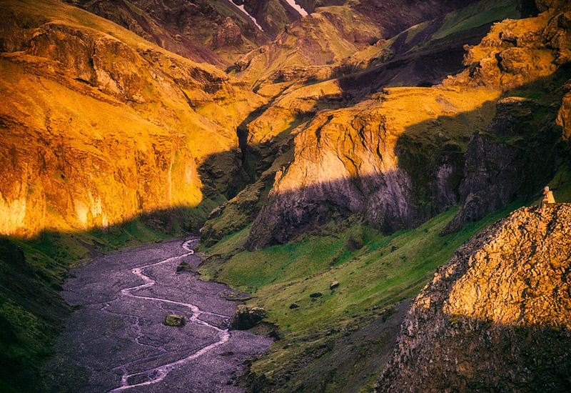 Det första höjdpunkten på dagen är det vackra Seljalandsfoss vattenfall, som med sina 60 meters höjd har ett fantastiskt brus. Om förhållandena tillåter kan man gå runt vattenfallet, och ja, du kan gå bakom Seljalandsfoss. Kort efter att vägen tar slut tar naturens skönhet över. Om man kommer in i Þórsmörk från södersidan kan man uppleva den berömda asksprutande vulkanen Eyjafjallajökull som har is och snö på toppen. Av de många intressanta platserna på vår tur ser vi Gígjökull-glaciärlagunen. Gígjökull kan faktiskt inte längre ses på kartan, eftersom den 2010 försvann under vulkanisk aska och sten efter utbrottet i vulkanen Eyjafjallajökull.