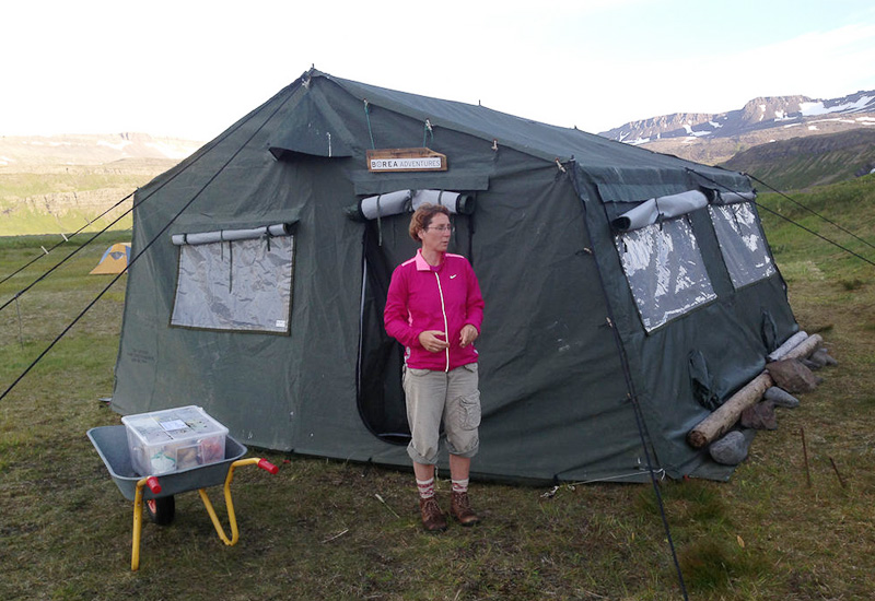 Under turen sover gruppen i bekväma tvåmannatält, och vi har också ett stort tält där vi lagar mat och umgås.