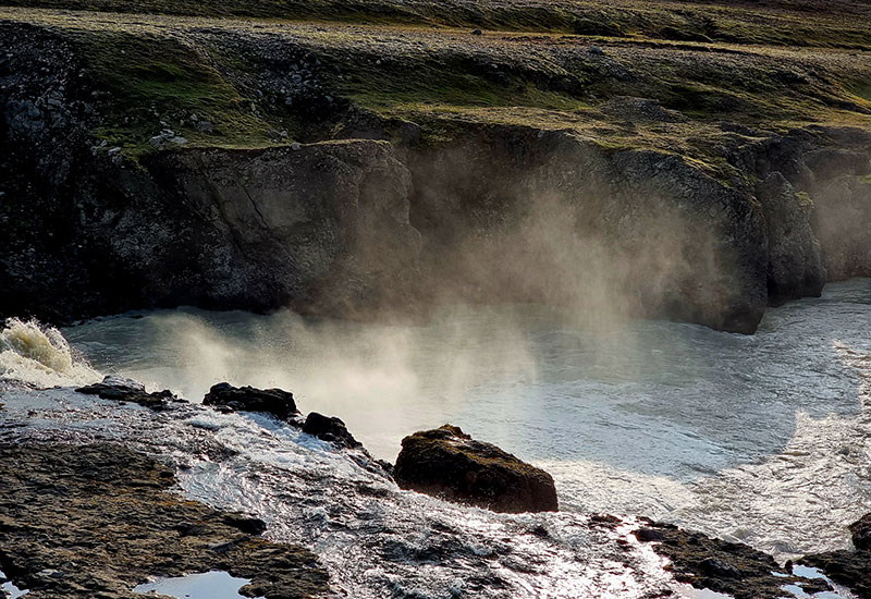 Tidigt under resan gör vi ett kort stopp vid det imponerande vattenfallet Gullfoss – ett av Islands mest ikoniska naturfenomen. Därifrån fortsätter vi längs vackra fjällvägar genom det karga höglandet. Under färden kan du njuta av utsikten över ändlösa lavafält och isklädda bergstoppar, innan vi når det färgrika området Kerlingarfjöll.