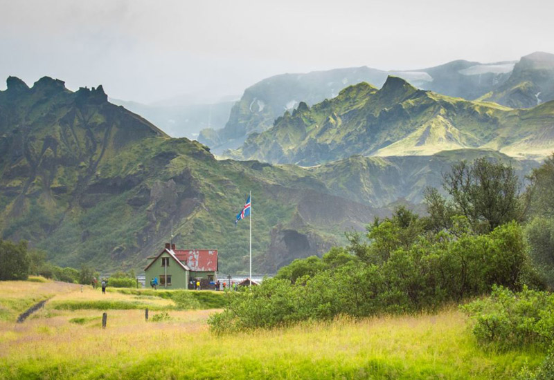 Vår sista dag i höglandet går mot den mytomspunna Þórsmörk-dalen, belägen mellan två glaciärer. Vi vandrar längs Mýrdalsjökull-glaciären och passerar berget Einhyrningur ("enhörningen"). När vi når björkskogarna vet vi att vi närmar oss Þórsmörk, ett av Islands vackraste områden.