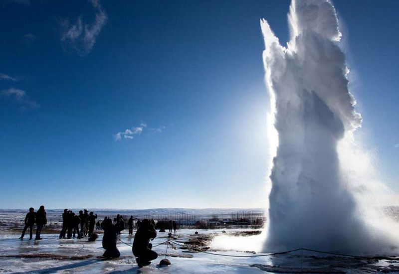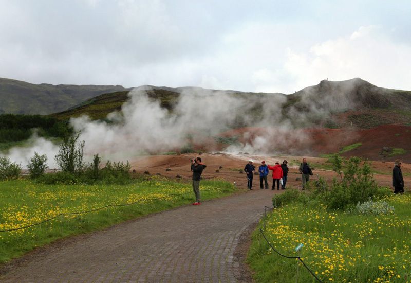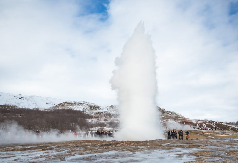 Här får du möjlighet att promenera bland de bubblande varma källorna runt den berömda gejsern Geysir. Tänk på att hålla dig inom de markerade områdena för din egen säkerhet. Gejsern Strokkur är ett måste – den sprutar upp vatten upp till 40 meter högt!