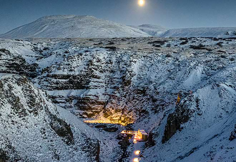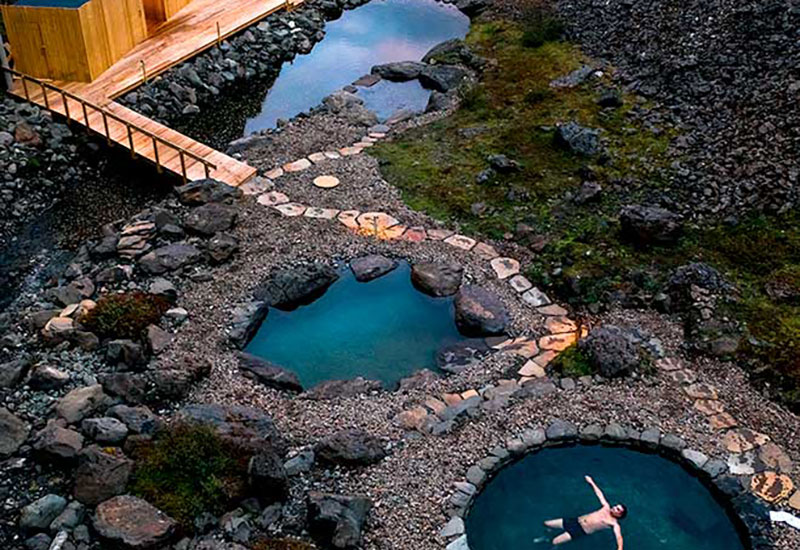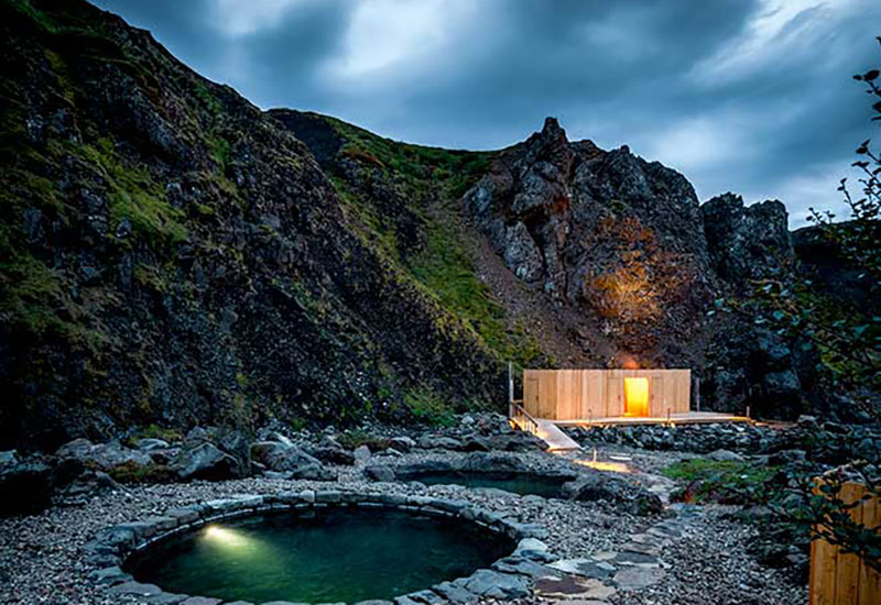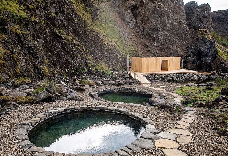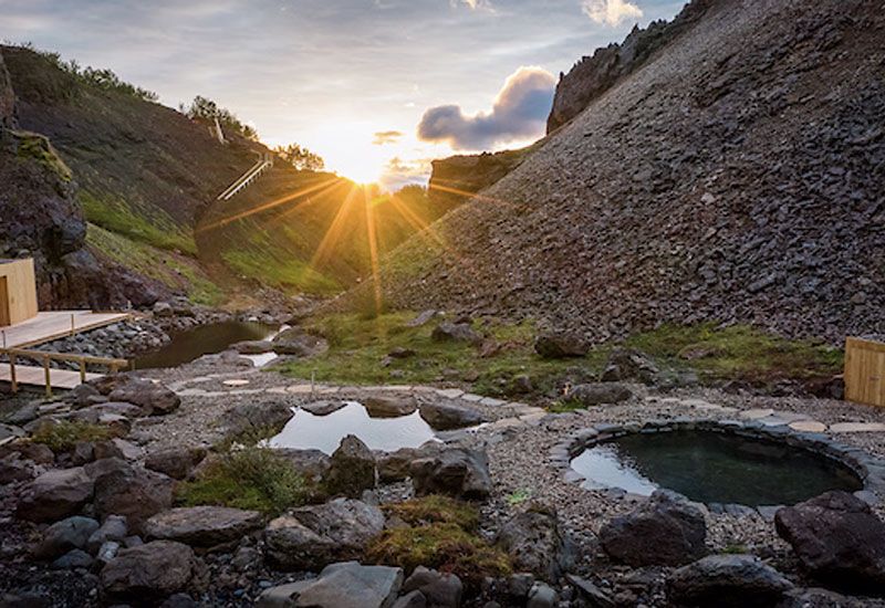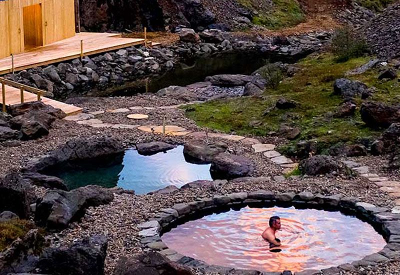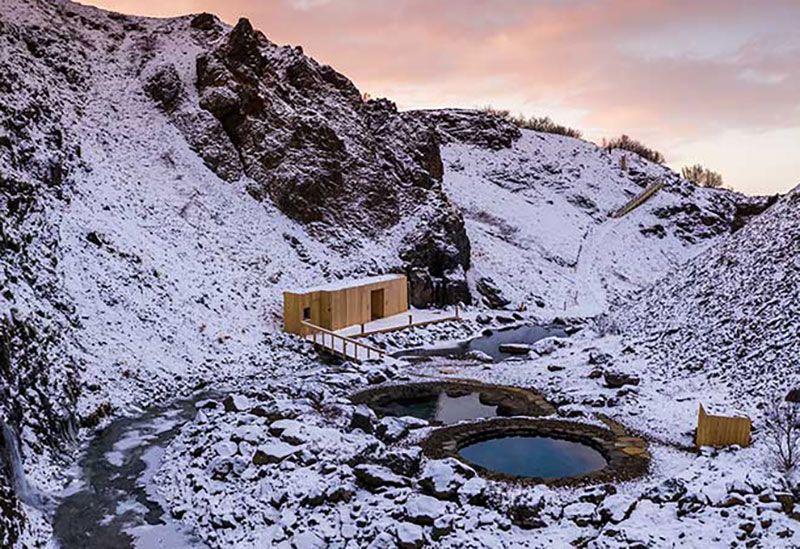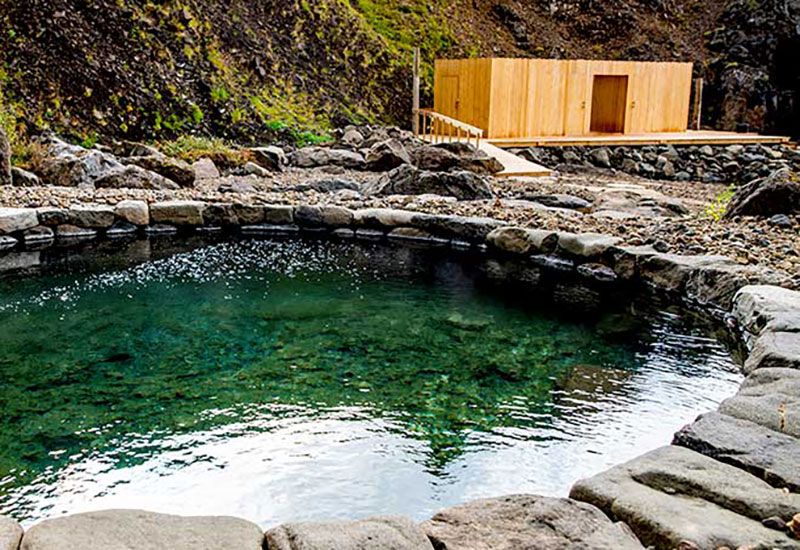 Projektet med Canyon Baths togs an av lokalbefolkningen i Húsafell, som gjorde stora insatser för att bevara hela strukturen så miljövänlig, hållbar och trogen områdets arv som möjligt. Välj mellan två geotermiska pooler med varierande temperaturer mellan 30–41 °C, båda med spektakulär utsikt över den omgivande kanjonen, bergen och glaciärerna.