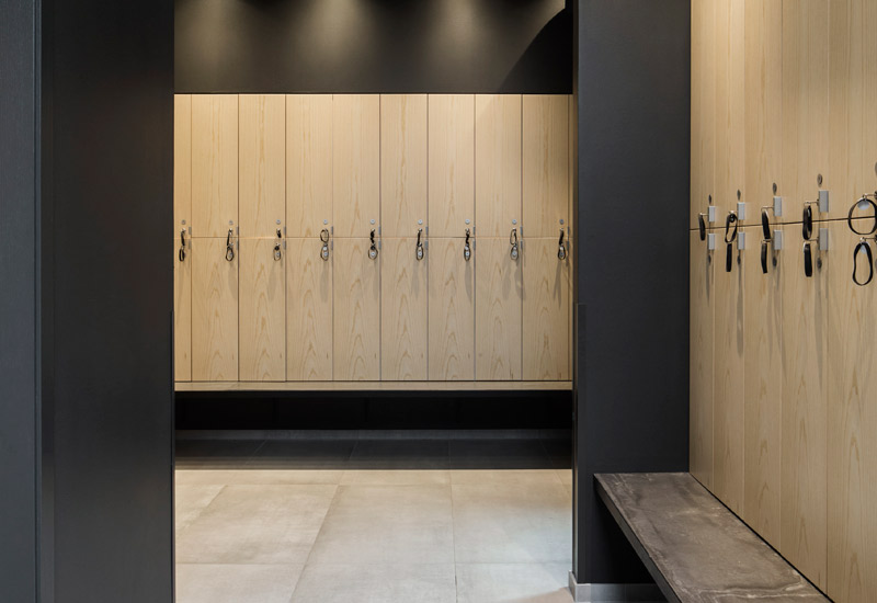Omklädningsrum: Utrustade med låsbara skåp, duschar och toaletter