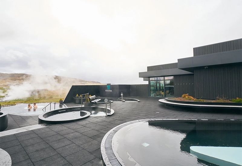 Krauma har fem varma avkopplande naturliga geotermiska bad. Du hittar också ett kallt bad, som får igång din blodcirkulation. De två lugnande basturna och avkopplingsrummet ger dig en plats att vila och finna ditt inre lugn. Det är en underbar och avkopplande känsla att sitta vid den öppna spisen, samtidigt som man lyssnar på lugnande musik.
