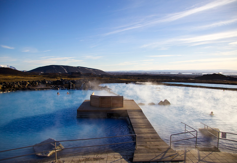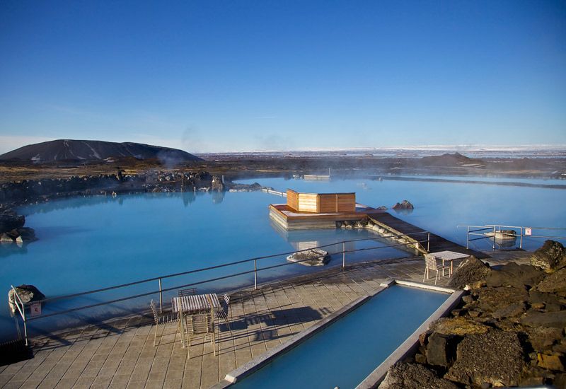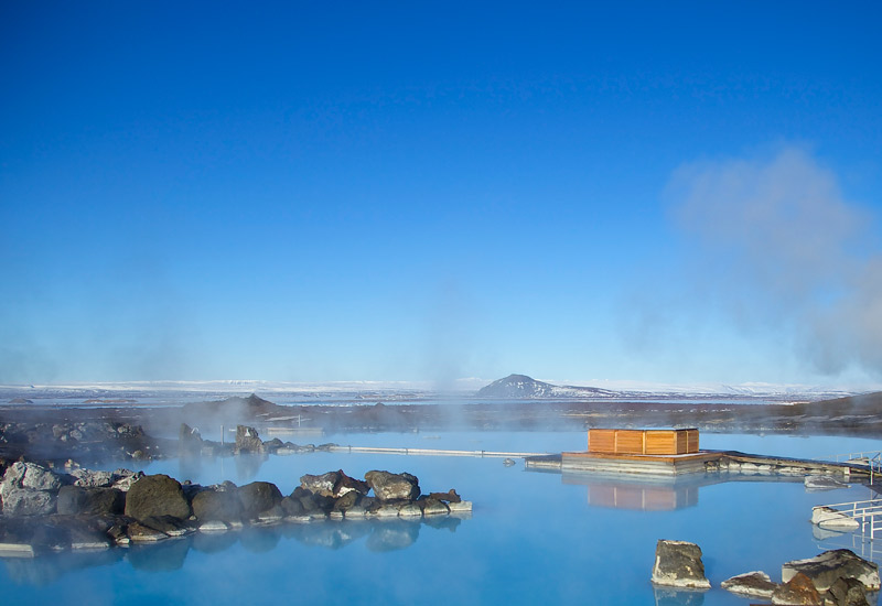 Mývatns naturbad (Jarðböðin) ligger mitt i nordöstra Island, cirka 105 km (65 miles) söder om polcirkeln. Sjön Mývatn är ett helt unikt naturområde rikt på fågelliv och är en av Europas största naturskatter.