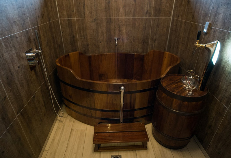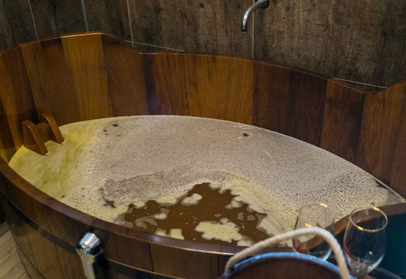 Det finns sju kar där vi kan ta emot upp till 14 personer per timme, eftersom gästerna kan välja att sitta antingen ensamma eller i par. Det finns ingen åldersgräns för själva badet, eftersom badvattnet inte innehåller alkohol. Kranarna vid sidan av varje badkar är dock endast för gäster som är 20 år eller äldre. Barn under 16 år måste vara i sällskap med en vuxen.
