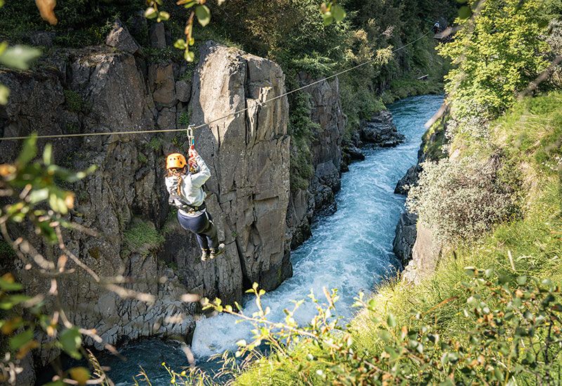 Vi har fem linor som väntar på att ta dig över en brusande flod och branta klippor! Våra guider leder dig säkert genom det äventyrliga floddalen med en kombination av ziplining och lätt vandring.